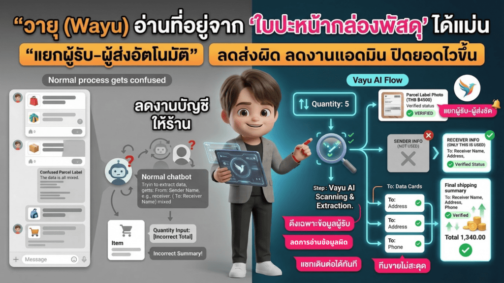วายุ (Wayu) อ่านที่อยู่จาก “ใบปะหน้ากล่องพัสดุ” ได้แม่น: แยกผู้รับ–ผู้ส่งอัตโนมัติ ลดส่งผิด ลดงานแอดมิน ปิดยอดไวขึ้น | KlangTECH®️